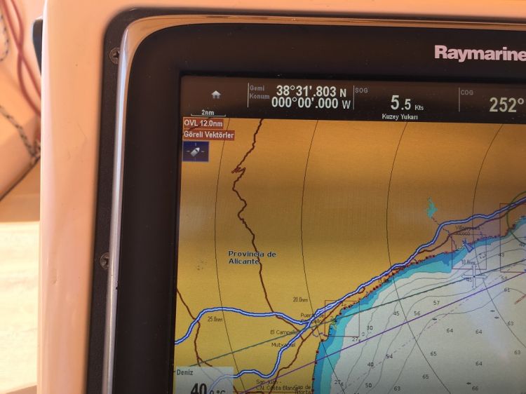 Fuengiroladan sabah sekiz gibi ayrıldık. Hedefimiz 45 mil mesafedeki Gibraltar . Deniz kağıt gibi dümdüz lehimize ciddi bir akıntı bunu hızımızın zaman zaman 7,5 knot lara çıkmasından anlıyorum. Benim teknem ...