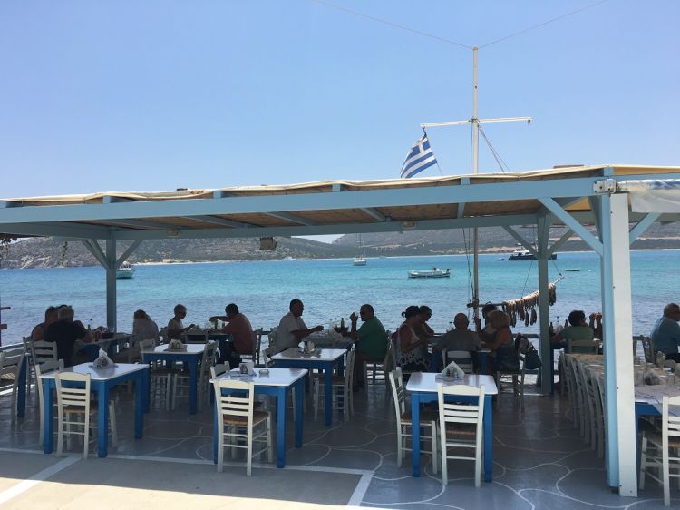 İki ada o kadar yakın ki 5 dakikada karşıda oluyorsunuz.Aradaki boğaz da deniz müthiş güzel görünüyor ama çok sığ. Antiparosun güney tarafındaki şahane koya gidiyoruz çok sessiz ve yeni gelişmekte olan bir köy var.Yollar bile hala toprak , Captain Pipis denen tavernada yemek yiyoruz ama herşey o kadar tuzlu ki bu kadar tuz hepimize fazla geliyor.