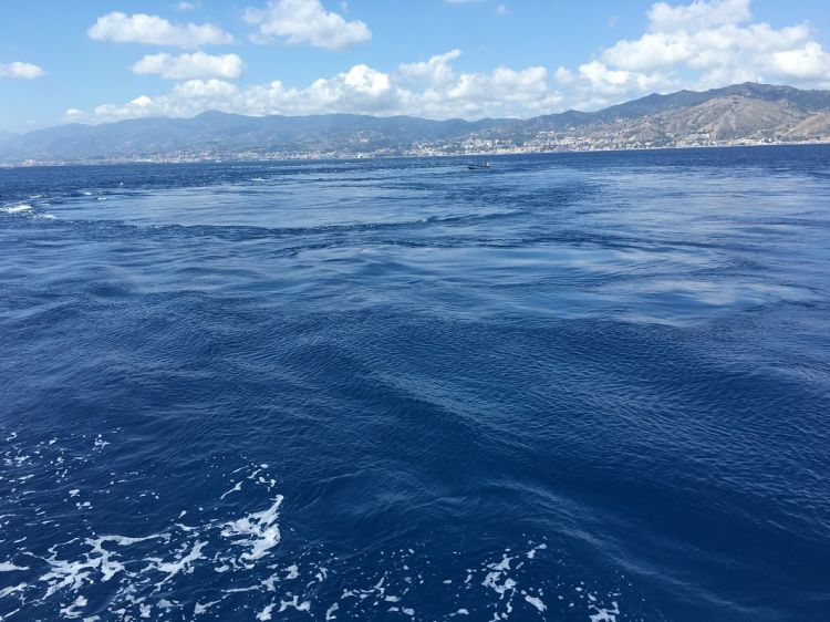 Gece biraz sallantılı da olsa rahat geçiyor.Sabah 5.30 da Messina için yola çıktık.Böyle erken çıkışlarımızda Ebru ilk başta kalkıyor yola çıkışı beraber yapıyoruz daha sonra tekrar gidip uykuya devam ediyor.Messina da aşağıdan yukarı doğru (güneyden kuzeye) çıkmak biraz problemli. Boğazda aşağıya doğru akıntı var ve rüzgarda varsa bayağı zorlu bir geçiş oluyor . 10 mil hızda esen rüzgarla anayelken motor 6,5-7 knot hızla boğaza doğru gidiyoruz.Boğazı sivri tarafı yukarıda ters duran bir huni gibi düşünün.Biz huninin geniş tarafına doğru yaklaşıyoruz.Sivri tarafından çıkacağız.6,5-7 ile giderken ilk başta 5 mile düştüm. İçimden oh böyle olsun bana yeter dedim.Sonra 4 sonra 3 en son 2,4 mil hıza kadar düştüm. Karşıdan 25-30 knot rüzgar geliyor ve sadece ana yelkeni kısıtlı kullanabiliyorum. Bu hızda gidersek bu boğaz bitmez diye düşünüyorum.Hızlanmak için çareler düşünüyorum sürekli. Açığa doğru gidemiyorum boğaz trafiği var. Bende çareyi iyice karaya yanaşmakta ve her girintinin içine doğru girmekte buluyorum. Böylece hızımız saatte 3,5-4 millere çıkıyor. Arabadan örnekleyerek söyleyeyim yani saatte 6,5 kilometre hız.Karada kaçınız dayanabilir böyle bir hıza sabredebilir. Neler çekiyoruz işte görün görün ve bize acıyın işte WinkHep tatil hep tatil değil yani.Rüzgar çok sert ama Allahtan dalgalar ufakta çok sorun olmuyor.Okuduğumuz bloglarda Messinada ne taktik uygularsanız uygulayın 2-3 milin üstü süratleri zor görürsünüz diyorlardı. Biz motor yelken bayağı gidiyoruz işte.Ben burası için benim taktiğimi tekrar söyleyeyim iyice kıyılayıp ,küçük körfezlerin bile içine girerek akıntıdan ve dalgadan nispeten korunmak .Boğazın en dar yerine gelmeden önce Vhf 14 kanaldan Messina VTS'yi arayarak geçişiniz hakkında bilgi vermek gerekiyor. Bizim en çok korktuğumuz yer olan Sicilya- Anakara arası feribotların çalıştığı bölümü lehimize akıntı yakalayarak 7 knot hızla jet gibi  geçtik. Bunun içinde yukarı çıkarken sancak taraftaki limanlarına çok yakın geçtik ve akıntı hızla bizi ileri taşıdı. Ama geçerken iskele tarafımızdaki aşağıya doğru acayip hızlı akıntıyı gözümüzle bile görüyorduk.