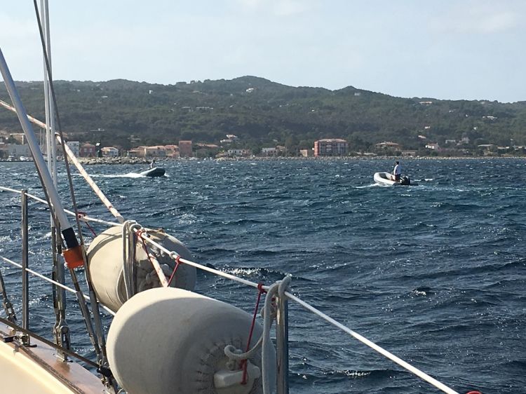 Carloforte girişinde bayağı sığlıklar var. Derinlik yer yer 4 metrelere kadar düşüyor. Hava 29 esiyor her taraf kuzucuklar (kırılan köpüklü dalgalar) ile dolu. Kıyıdan bir mil kadar açıkta bir tane şişme bot bize doğru geliyor. Ebru dedi ki “ bak marinadan bizi karşılamaya geliyorlar”. Ben de saçmama Ebru ya balık tutuyordur karşı kıyıya gidiyordur falan dedim. Ama Ebrunun dediği çıktı. Hani bizde eskiden minibüs muavinleri vardı yolcu kapmak için birbirleri ile yarışır kolunuzdan tutup sizi kendi minibüsüne götürmeye çalışırlar ya işte tam öyle . Adam 29 havada bir mil açığa çıkmış bizi kendi marinasına yanaşmamız için ikna etmeye çalışıyor.