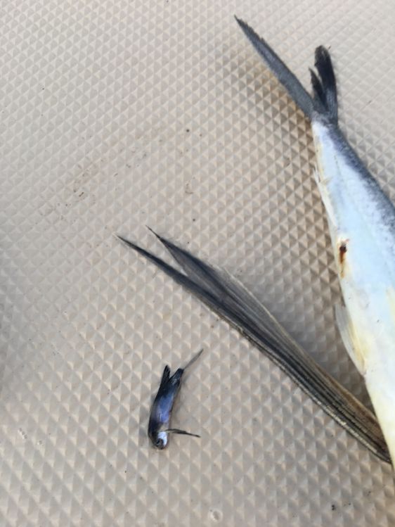 Şu büyük balığın yanındaki yavru ucan balığı görüyormusunuz bu bile uçup tekneye düşmüş iyimi .