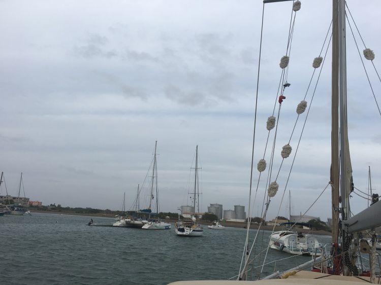 Akşam üstüne doğru Mİ Vida teknesi ile aramız 10 mil kadar açılmıştı. Onların bizi bekleyeceğini bildiğimiz için bekletmemek adına motor çalıştırıyoruz. Hatırlarsanız adanın önüne geldiğimizde birlikte giriş yapma kararı almıştık. Onların 3 mil yanına yaklaşana kadar motoru stop etmedik. Bu arada giriş yapacağımız limanın 30 mil yakınına gece 24 de varmıştık. Hava ve dalgalar bir miktar artmıştı. Gündüz giriş yapmak istediğimiz için yelkenleri küçültüyoruz. En son küçültmeden sonra hızımız 2,5-3 knotlara düşürdük. Adanın güney tarafına dönünce denizler iyice kırıldı. Öncesinde kaba dalgada tekne çok yalpaya düşüyordu. Mi Vida teknesi giriş yapacağımız limanın önünde beklerken aramızdaki mesafe 2,5 mil kadardı. Ve aniden havanın aydınlanmasını beklemeden girişe yöneldiler. Anons falan yaptık ama sanırım duymadılar. Bizde onun üstüne onlara yetişelim diye gaza bastık ama yetişemedik. Bu limanın girişi oldukça çetrefilli görüyor. Bir sürü çakar yanıp sönüyor. Girişin ağzına geldiğimizde saat 06.00 olmuştu. Yavaş yavaş içeriye girmeye başladık ilk çakarın önüne gelince Ebru ileride tanımlayamadığı karaltılar görünce geri dön dedi ve zaten yavaş olan tekneyi durdurup temiz suya doğru yöneldim. Bu arada Mi Vida teknesi ile telsizle konuşuyoruz ve onlar bize projektör tutuyorlar gelmemiz için ama ben zaten 3-4 saat dışarıda beklemişim aydınlıkta giriş yapmak için bir saat daha beklerim diyerek limanın önünde tekneyi eylendirmeye başladım.