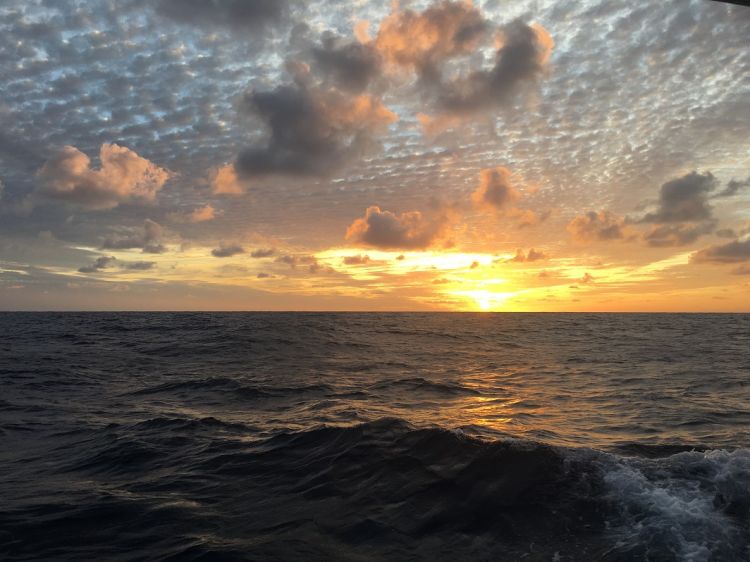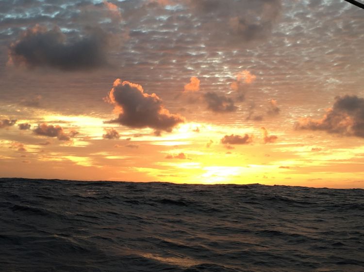 Neyse herşey hazır son mesajları atıp ve son kez hava durumlarını alıp yola koyuluyoruz. Hava 20-23 knot arasında gidip geliyor. Dalgalar çok yüksek değil. 3. Camadan da ana yelken ve 3. Camadan da Cenova ile yola koyuluyoruz. Hızımız 7-8 knot aralığında .Tam karşımızda Santa Antao adası var. İki ada arasındaki boğazda keyifle ilerliyoruz. Santa Antao adasının güney doğu burnuna gelince Cenova terslemeye başlıyor ve hemen kapatıyoruz. Ana yelkeni full açıp yola devam ediyoruz. Hızımız 6-7 knot aralığında keyfimiz gayet iyi. Saat 13.00 olduğunda çıktığımız limandan yaklaşık 17 mil uzaklaşmışız ama hala Santa Atao’nun kuytusunda devam ediyoruz. Bakalım adanın kuytusundan çıktıktan sonra okyanus yüzünü bize nasıl gösterecek.