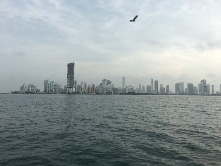 Cartegena’ya gece varmamak için hesap kitap yapıyoruz yolumuz yaklaşık 120 mil  ve sabah 09.00 da yola çıkıyoruz. Yol boyu bize çapariz verebilecek bir sığlık falan yok . O yönden rahatız ama bir tek sorunumuz var.  O da Barranquilla şehrinin içinden denize dökülen Magdelena nehri. Biz görmedik ama bu nehir oldukça büyükmüş ve döküldüğü yerden itibaren, karadan 20 mil açığa kadar etkileri devam ediyormuş. Hatta bu bölümlerde deniz sığlaşıyor ve  çok kötü dalga yapıyormuş. Aslında biz iyi ki de Santa Marta da durmuşuz bu sayede kötü denizleri gündüz geçeceğiz diye seviniyoruz. Marinadan çıkar çıkmaz güzel bir apaz rüzgarı yakalayıp full arma yelkenlerimizi açıp motoru kapatıyoruz. Rüzgar 15-20 knot aralığında dolaşıyor, dalga boyu da yarım metre civarlarında . Hızımız 6,5- 7,5 knot aralığında anlayacağınız keyfimiz çok yerinde.